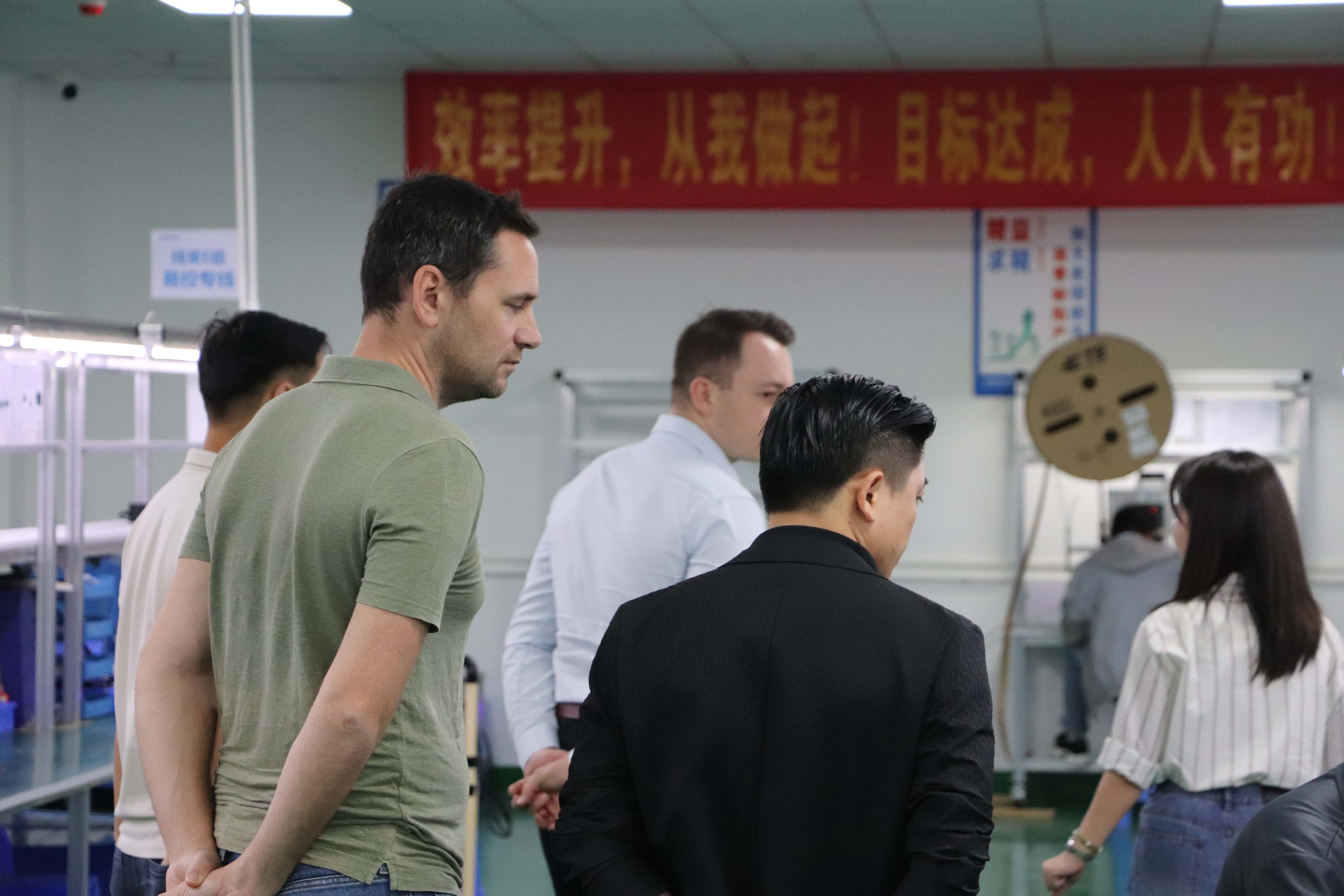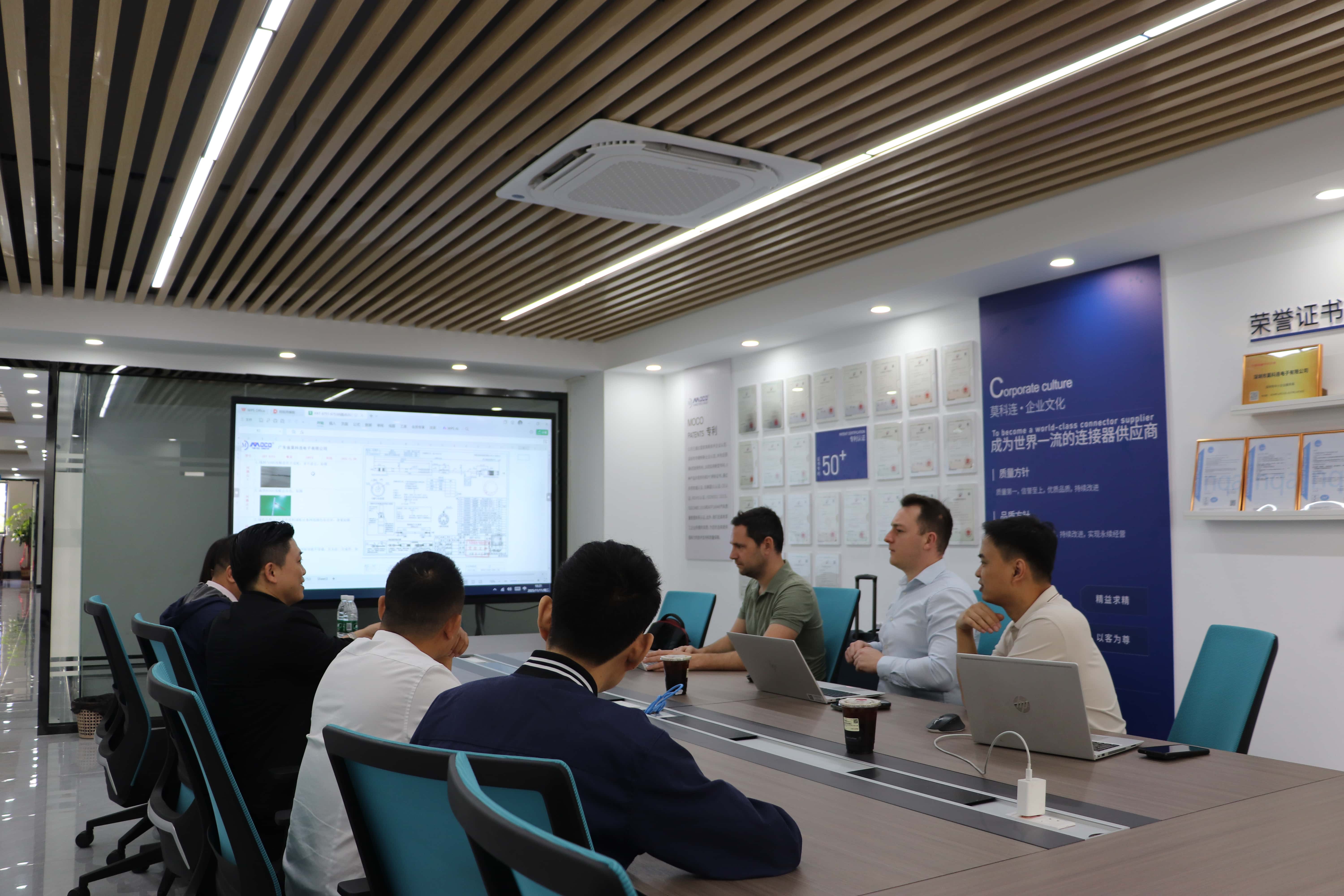 After the factory tour, both teams held a technical meeting focusing on the ongoing connector development project. We reviewed test data, tolerance requirements, cable routing considerations, and potential design optimizations.