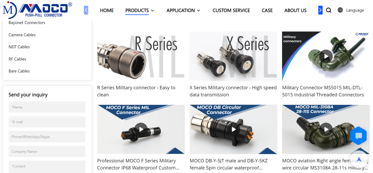 A MOCO Connectors possui uma categoria de produto separada de conectores para atender aos critérios de especificações e padrões militares. Esses conectores são geralmente usados em computadores, navegação, comunicações militares, radar, guerra eletrônica e controle de orientação marítima.